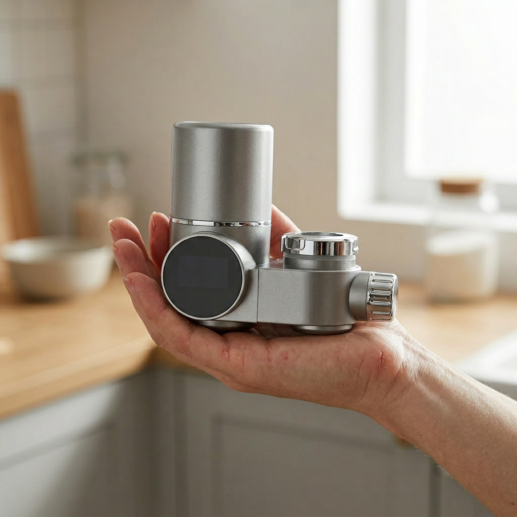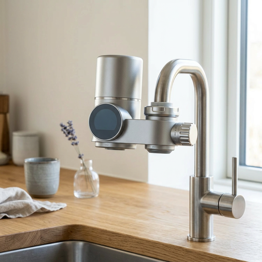 Filteret hjælper med at reducere partikler og urenheder i vandet, så det føles renere og giver en friskere smag direkte fra vandhanen.